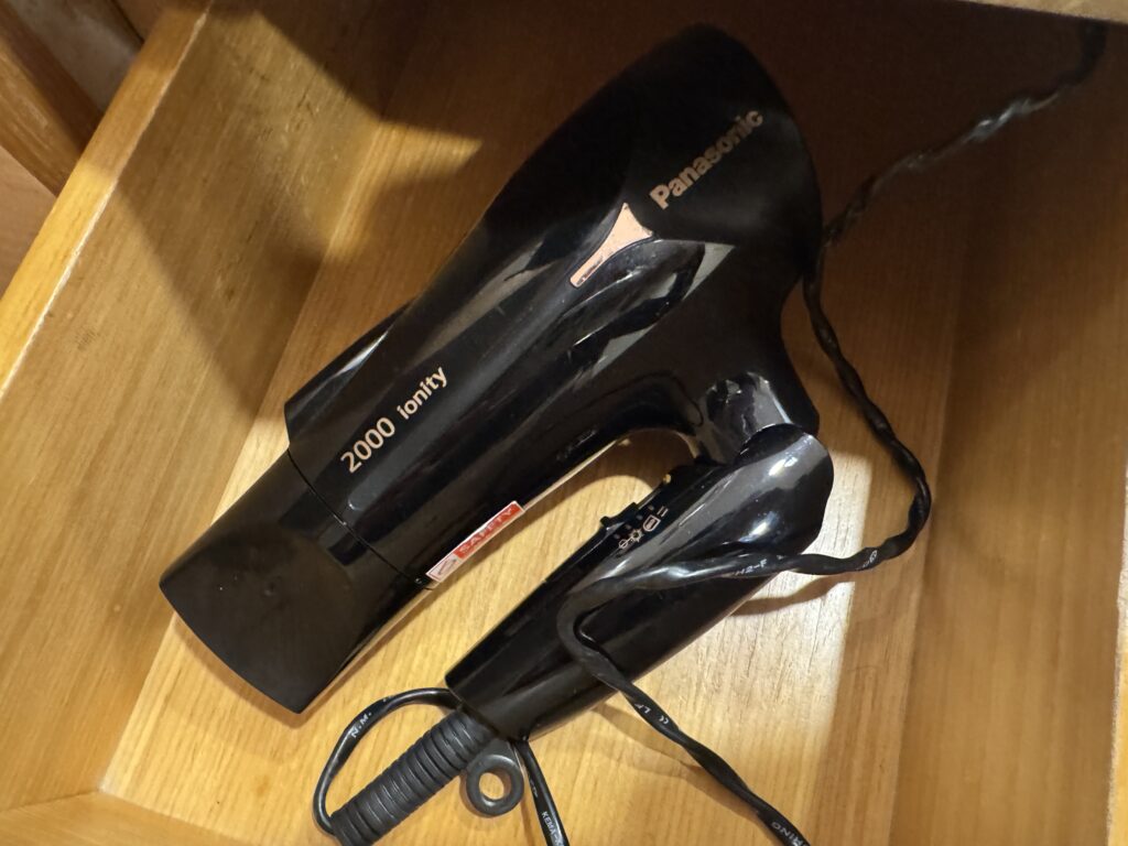 最低限のアメニティと、ドライヤーは古い形のパナソニックでした。変換プラグが一つお部屋に常備されていたのでありがたいです。