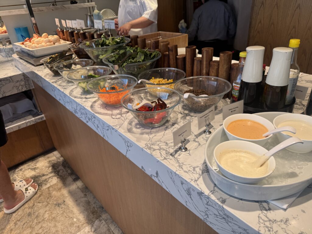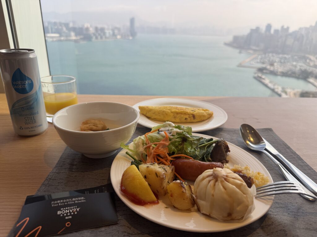 エリート特典の朝食は、ラウンジにていただけます。オムレツカウンターもありスタッフさんが好きな具材で作ってくれます。ラウンジではオムレツコーナーが無いホテルも多いので、嬉しいです!