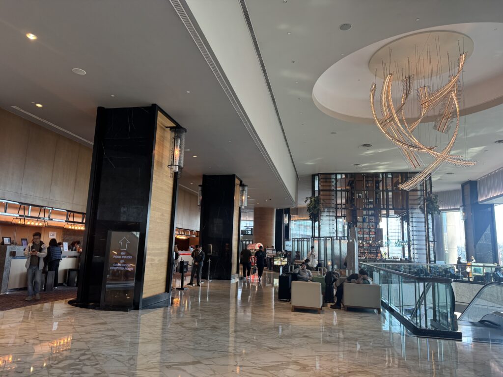 ホテルロビー・チェックインカウンターは2階にあり、私たちはお昼過ぎに到着しましたが、チェックイン・アウトの両方の宿泊客がいて少し混んでいました。(エリア的にビジネスマンの方もちらほら)